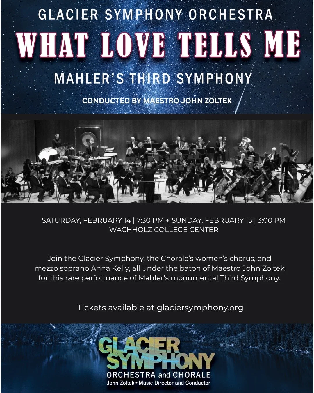 The 43rd Season of the Glacier Symphony includes a season spanning tribute to Mahler, as well as works by Brahms, John Williams, Clara Schumann, and Ravel and highlights the art of the piano. Season subscriptions and individual tickets available now!